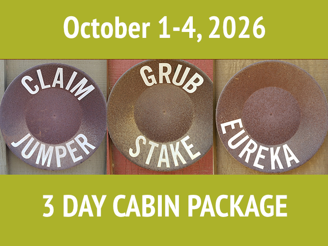 Three day cabin package includes a picnic table and an in-ground fire pit/grill. The package includes our famous Saturday night cook-out. This cabin has one full and one twin bed (a cot can be provided by request). Please bring your own pillows. Enjoy exploring the river, fishing, swimming, hiking, gold mining, and more. All of this plus the best mining in the Mother Lode! Bag of gold bearing dirt available in the Trading Post. Reservations are required. Pricing is for two people, extra people add-ons available. You may also make your reservation by calling the office at 209-296-4100. Please note – No refund on cancellation. Deposit will be kept if less than 30 day notice is given on cancellation.